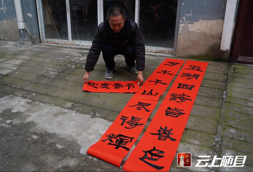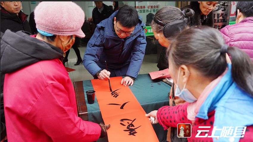 新春福来到,春联送到家。1月23日,岁暮天寒,随县厉山镇炎帝社区老年活动中心室外却笔墨飘香、年味浓浓,一场“盛世迎新春,诗联进社区”活动在此温情开启。数名书法爱好者现场挥毫泼墨,手写了近百副春联送给社区居民们,也将新春的美好祝愿送到了他们的心坎上。