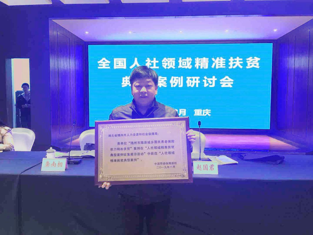 2019年全市共为32062名精准扶贫对象代缴保费320.62万元,每月为5854名60周岁以上精准扶贫对象按时发放养老金,实现了“不漏一人、不差一分”。2019年1月入选全国人社领域精准扶贫典型案例(全国20个,其中湖北省1个),2019年 3月26日,全国人社系统扶贫案例研讨会在重庆召开,随州市在会上做了经验交流发言。