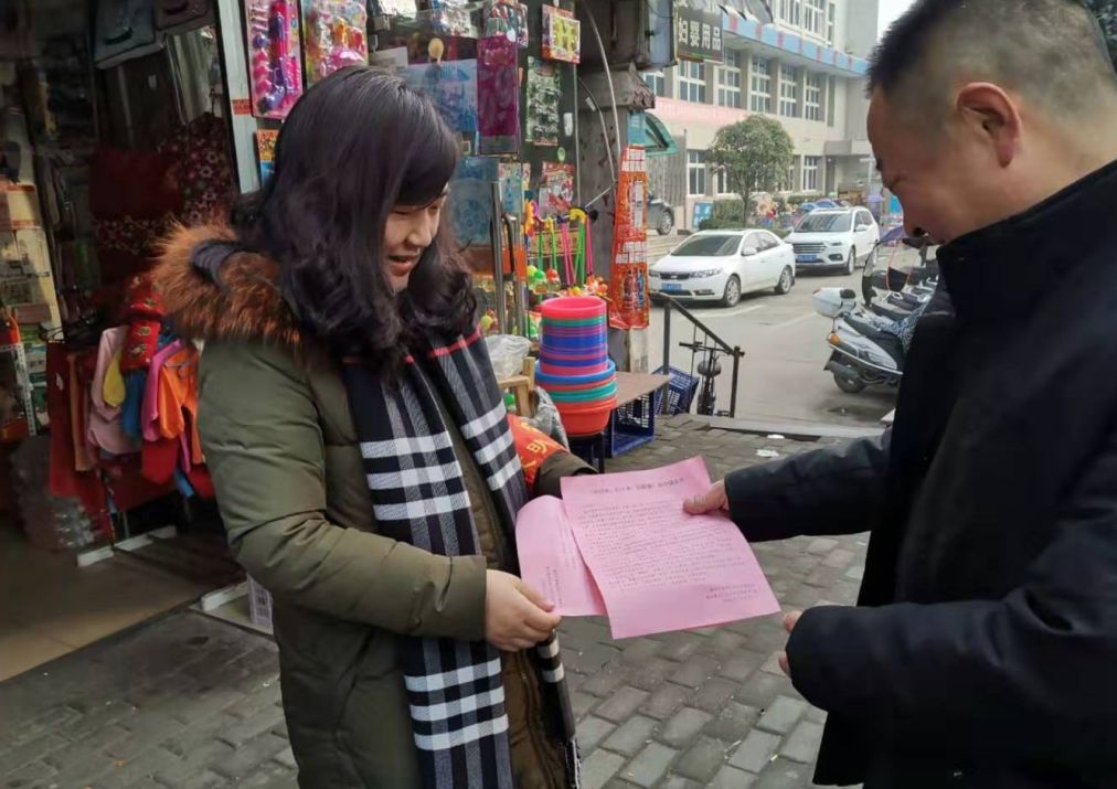 东城舜井道社区工作人员发放、粘贴《“齐动手、扫干净、迎新春”活动倡议书》。