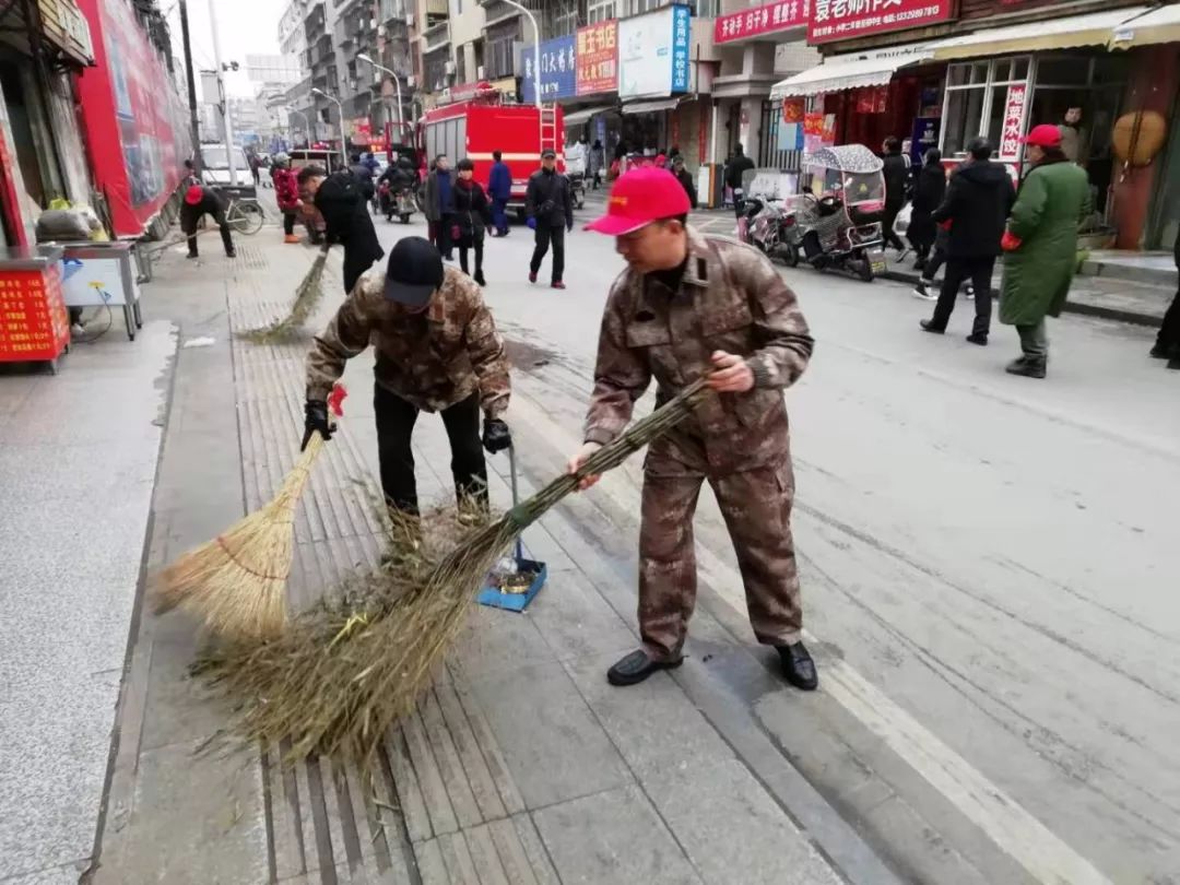 1月13日,曾都区应急管理局联合社区加大道路清扫保洁力度,清除卫生死角。