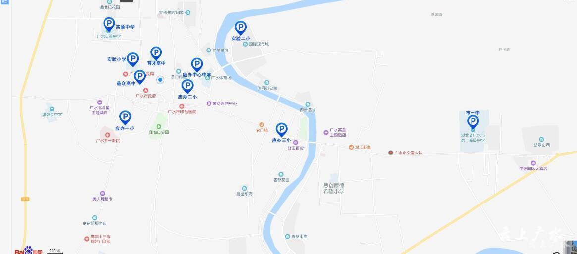 免费停车的14所广水学校:育才高中、益众高中、文华高中、实验初中、实验小学、实验二小、应办中心中学、应办渡蚁桥学校、 应办三小、灵杰学校、市二中、广才中学、广办二小、广办三小。