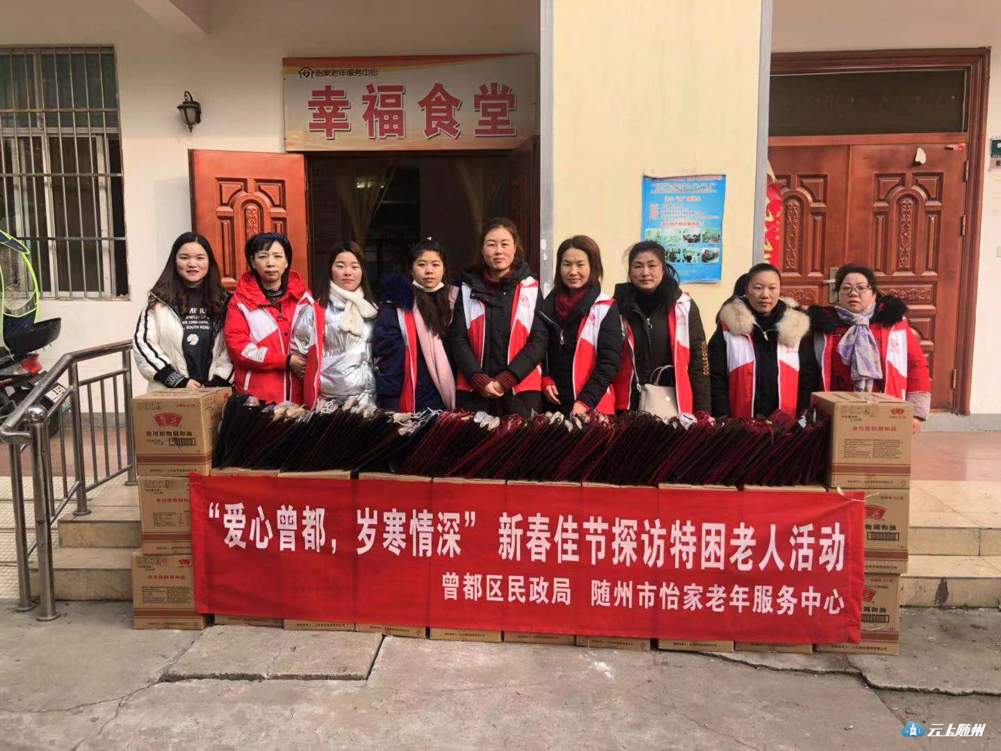 近期,曾都区民政局联合随州市怡家老年服务中心带着自制三鲜、安全食用油等物资来到近300户60岁以上特困老人家中,了解、解决特困老年人面临的生活困难,把党和政府的关怀及新春祝福送到老人身边,让困难老人度过一个温暖、祥和的春节。