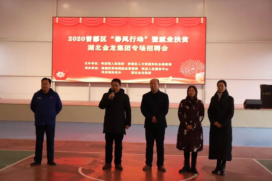 “今年,公司扩大了生产规模,特别需要技术工人和管理人员,这场招聘会为我们解了燃眉之急。同时,公司主动承担社会责任,助力脱贫攻坚,专门为贫困户提供多个岗位,开出优厚待遇,帮助贫困户脱贫增收。”湖北金龙集团公司副总经理杨嘉雄说。
