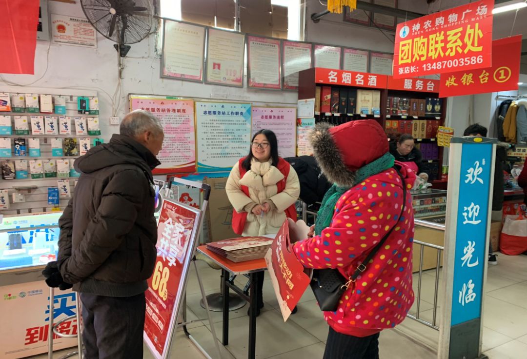 在厉山镇神农购物广场进口处,队员们为周边的住户和前来购物的群众发放了网络故障处理小卡片,并赠送了春联,深受大家的欢迎。