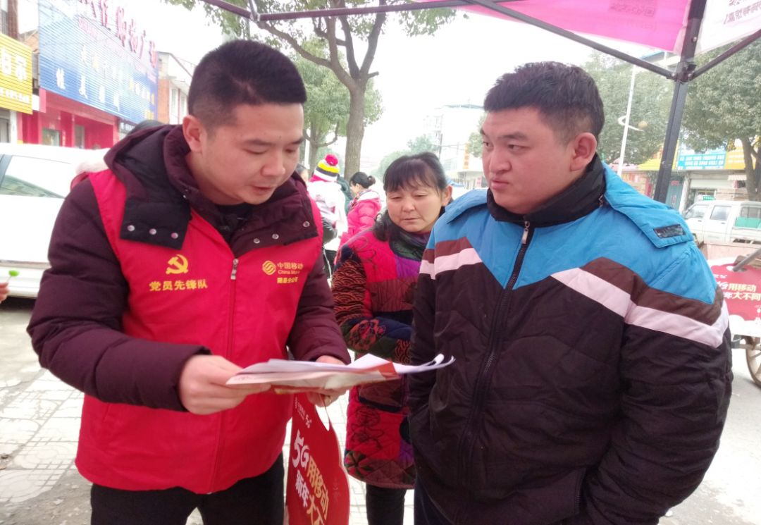 在安居镇顺泰超市旁,党员先锋队队员们支起了一顶顶帐篷,搭建临时宣传服务点,为沿途的居民和前来置办年货的老乡发放提速降费优惠政策告示,为大家详细讲解最新的宽带升级情况,并一一解答大家的疑惑,同时送上防电信诈骗小诀窍,以提高群众的防范意识。
