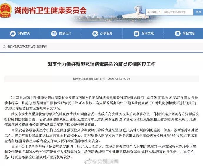 湖南确诊首例新型肺炎
