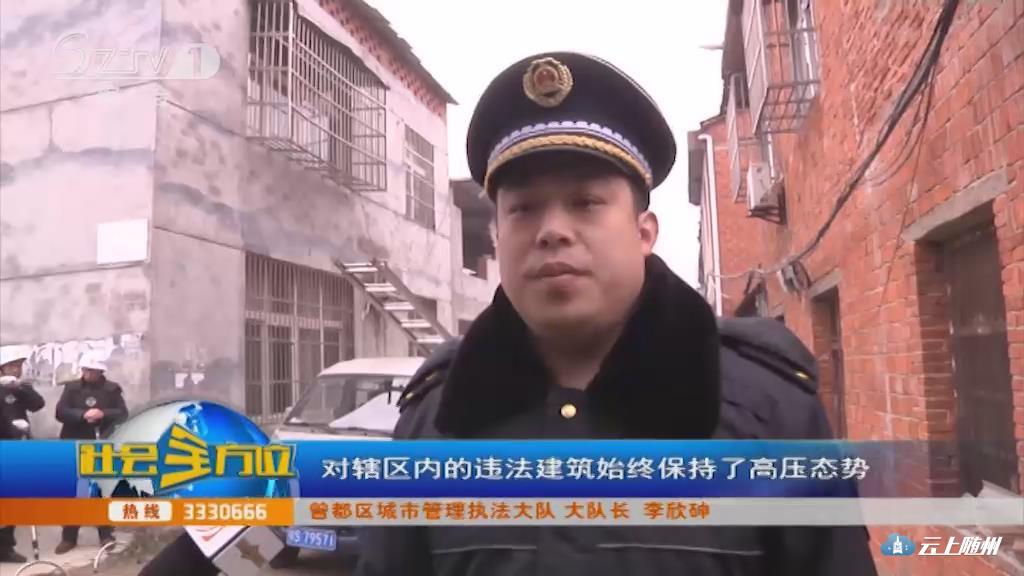 【采访 曾都区城市管理执法大队 大队长李欣砷】2019年,自曾都区城市管理执法局组建以来,我们对辖区内违法建设始终保持零容忍的高压态势,围绕“早发现,早制止,早处理”的工作理念,对辖区内的违法建筑始终保持了高压态势,虽然前期我们在执法过程中遇到暴力抗法,致使我们6名队员受到伤害,但是我们在日常工作中不论严寒酷暑、不论刮风下雨,依然全天候无死角巡查,节假日更是加班加点巡查,对违法建设发现一起、制止一起、拆除一起。