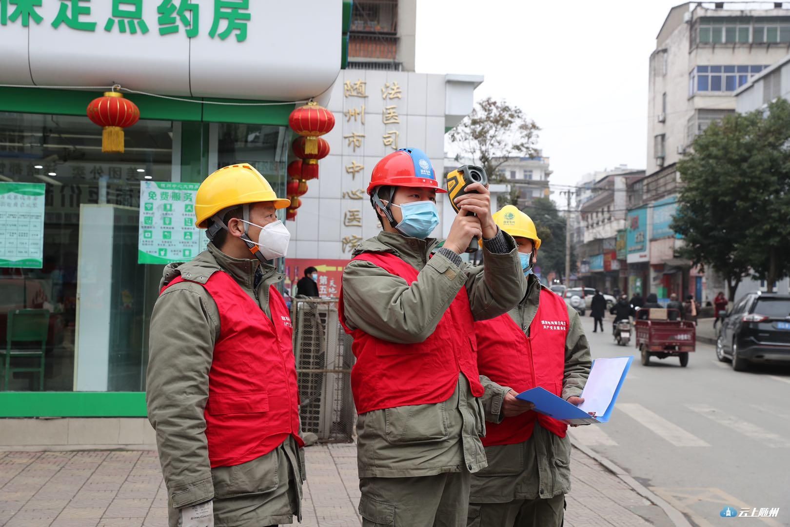 1月23日,湖北随州供电公司出动党员突击队,对随州市中心医院、中医院、妇幼保健院等医疗机构的电力设备进行红外测温检查,确保供电安全可靠。