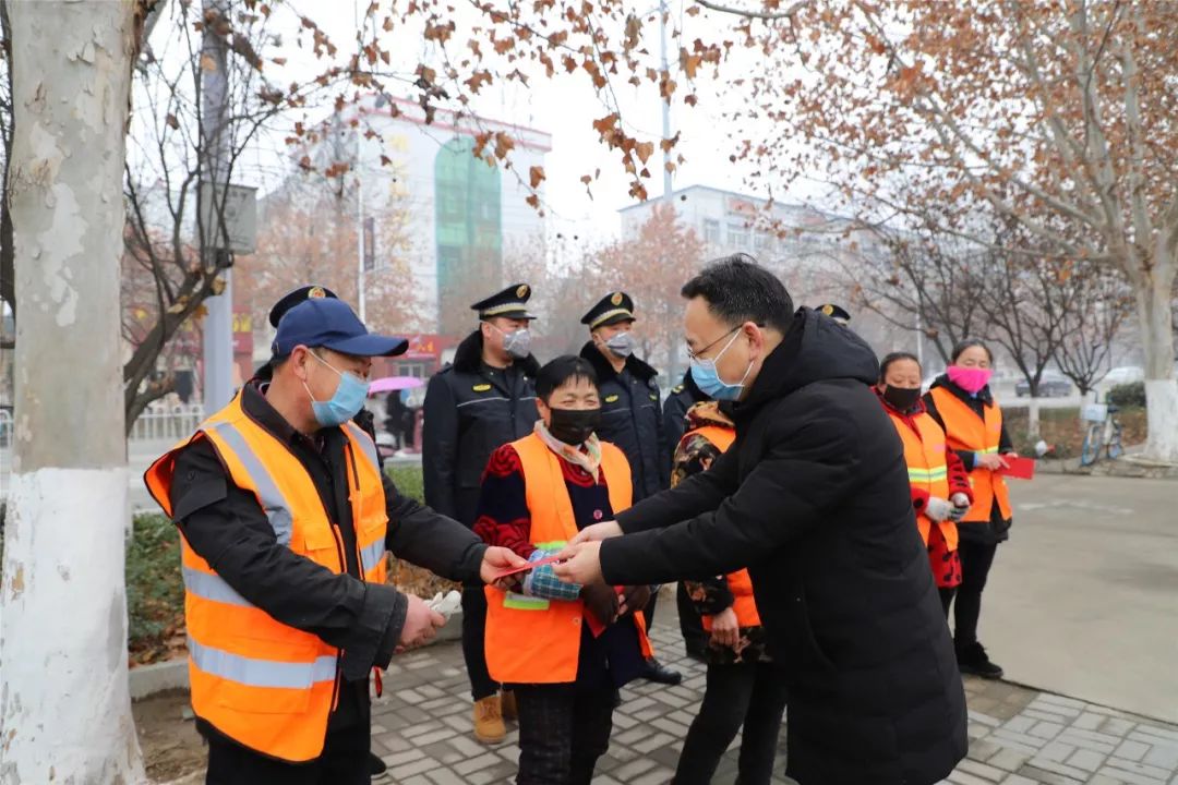 张健表示,城市是我家,环境靠大家,干净整洁的城市环境不仅要靠大家来营造,更离不开环卫工人、城管队员的辛勤付出。过去的一年,在城市环境整治工作中,环卫工人、城管队员克服了各种困难,做了大量工作,工作最辛苦,最值得尊重。在新的一年里,希望大家继续履行好工作职责,将自己负责的区域环境卫生打扫的更干净,把城市装扮的更有魅力。