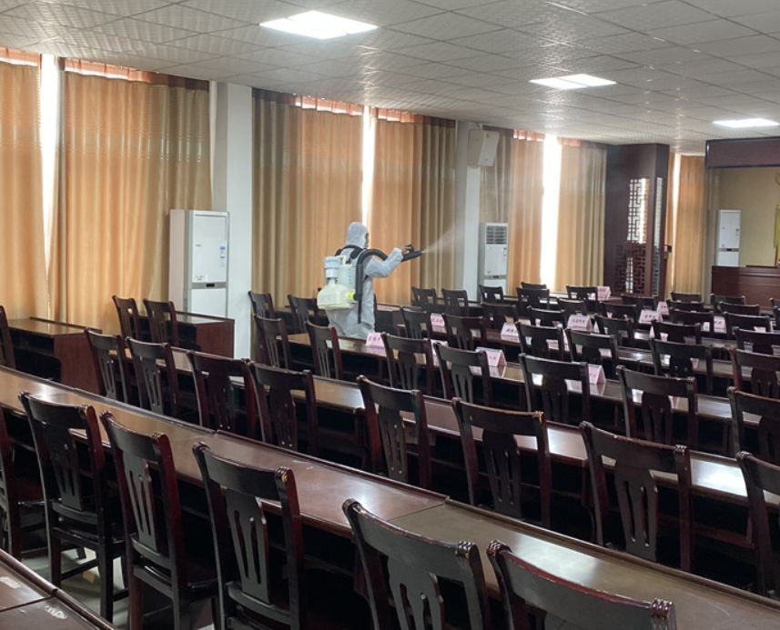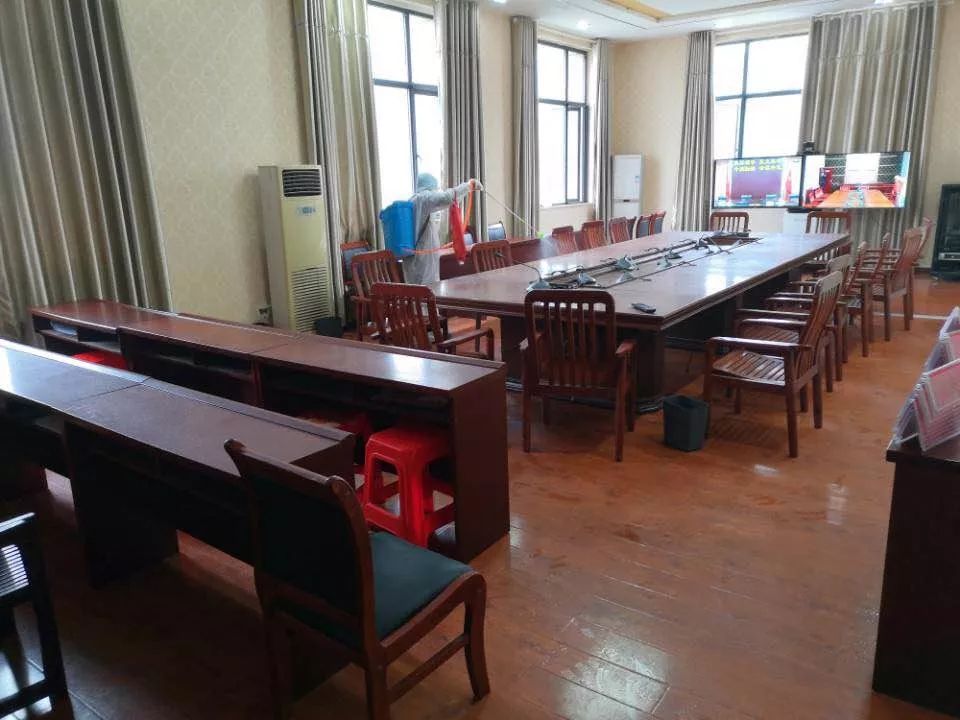 1月25日,厉山镇卫生院为镇政府会议室进行消毒杀菌。(林斌武)