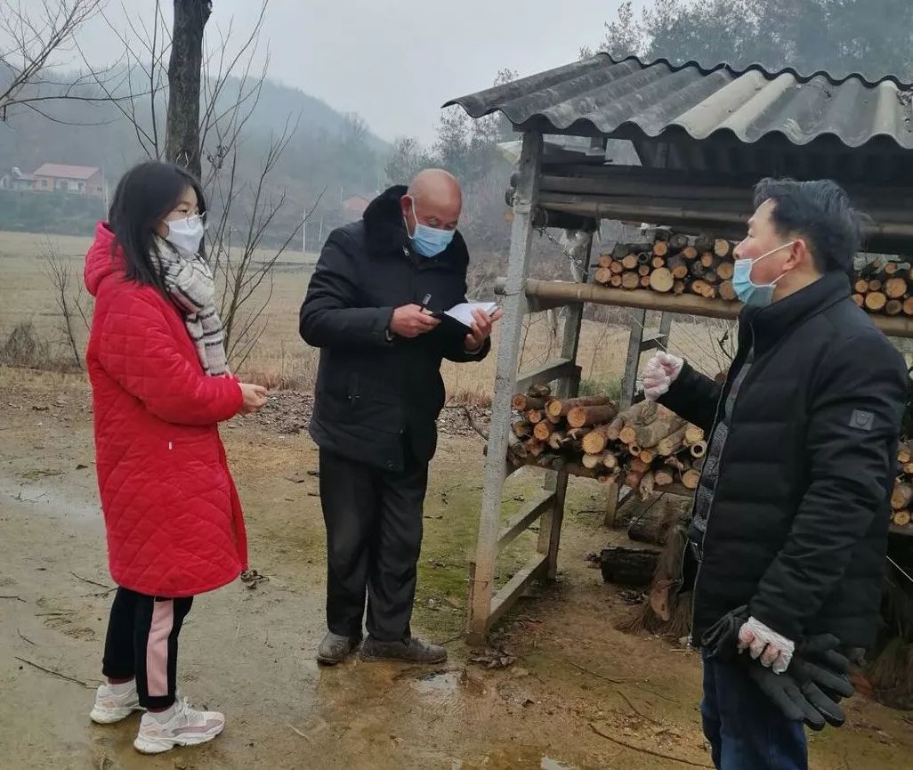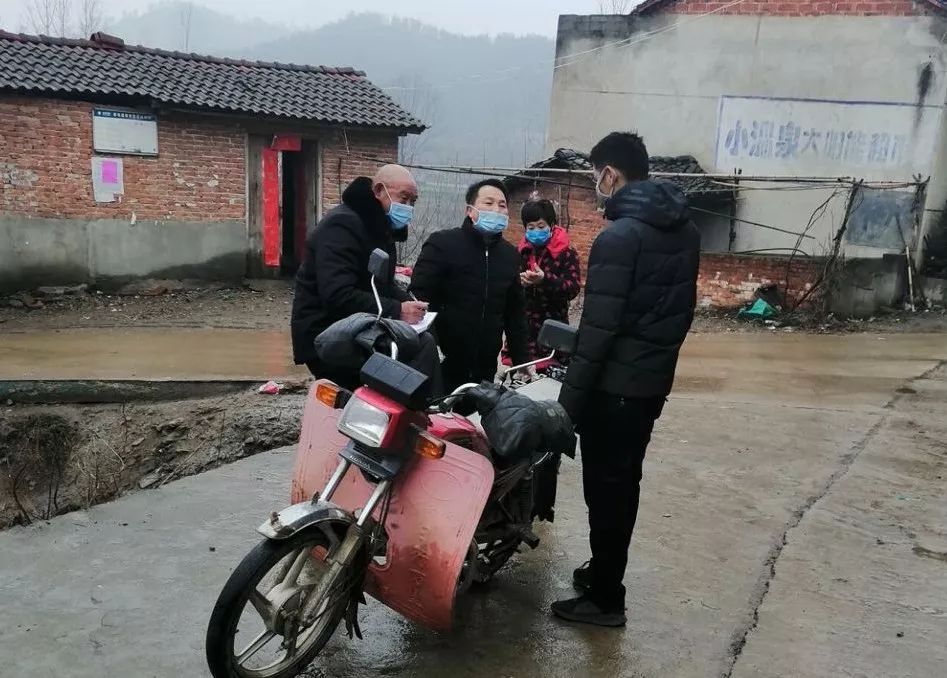 1月25日,安居镇各村村医与村委会班子成员上门给村民测量体温,及时跟踪监测返乡人员身体情况。(储蕙宇)