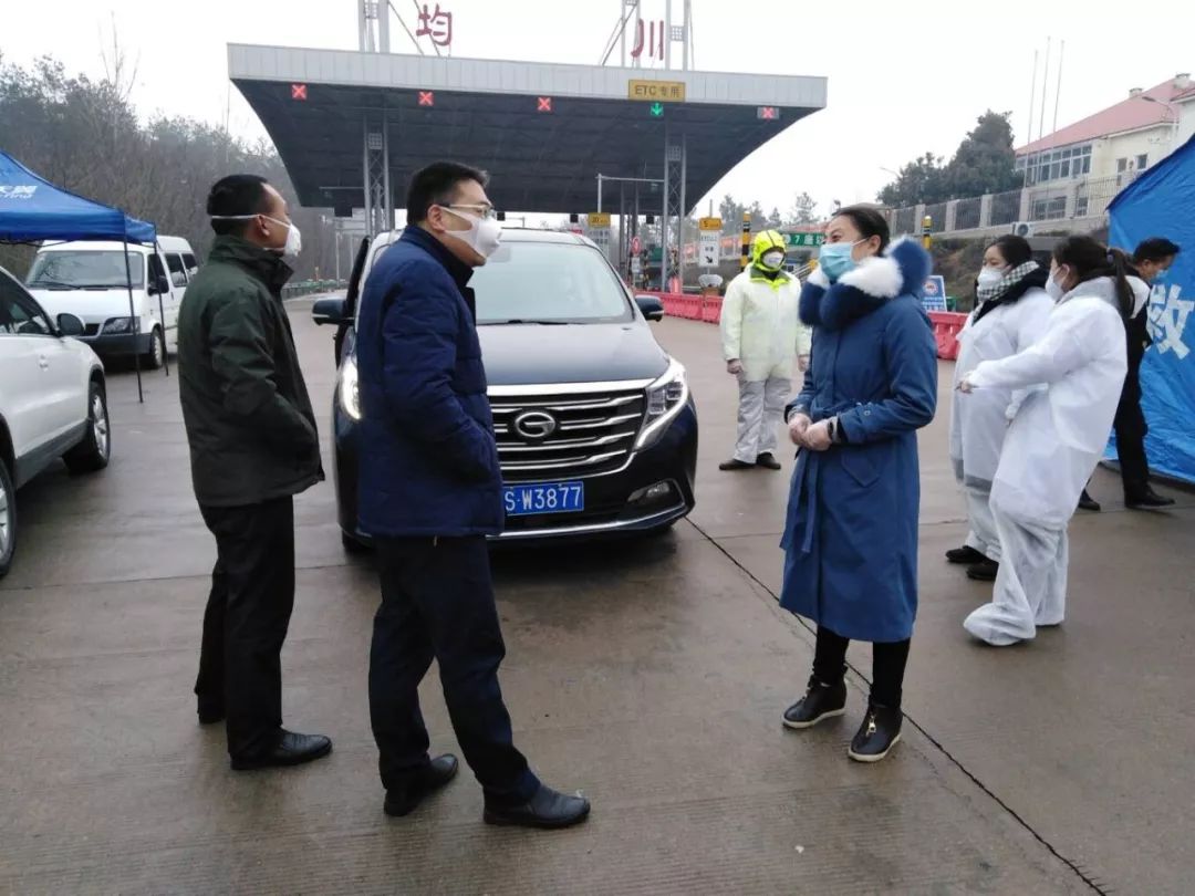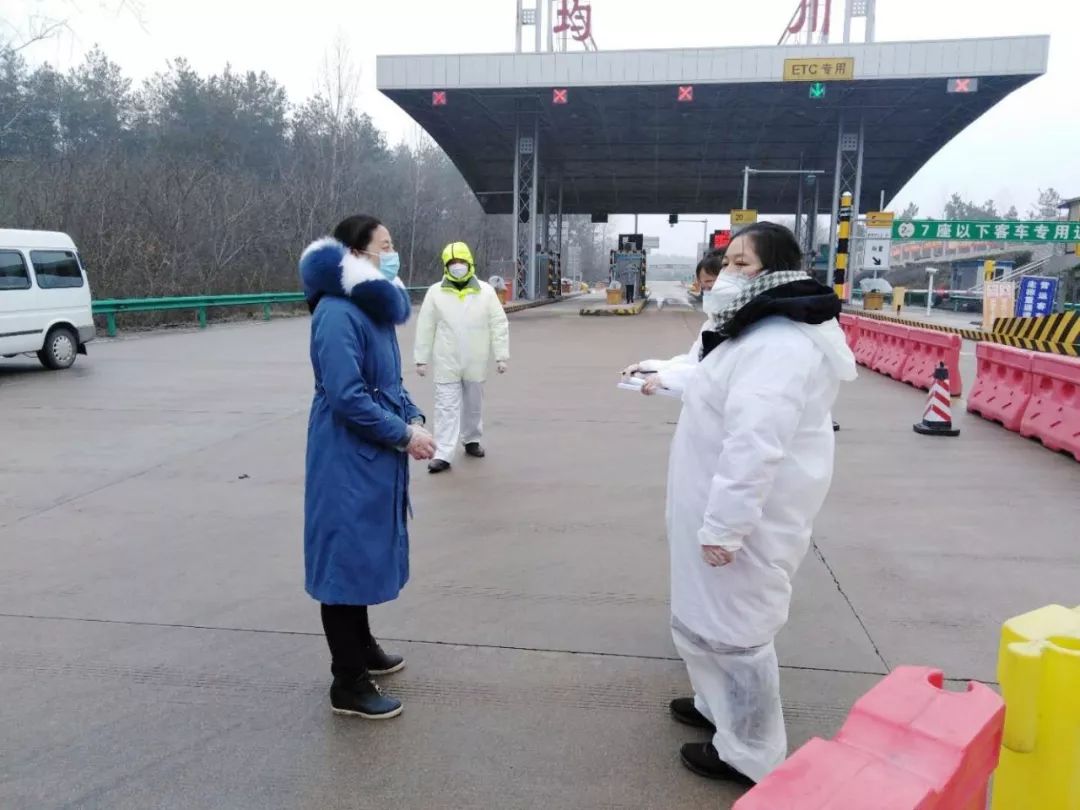 1月25日,均川镇主要负责人在高速路口监测点督办指导过往车辆登记及返乡人员体温检测工作。(王敏)