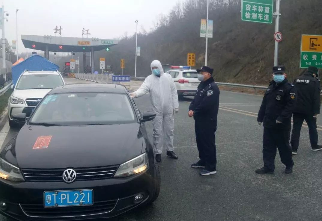 1月25日,厉山镇执勤专班在封江高速路口执勤;联群社区已为社区群众免费发放口罩4000个。(林斌武)