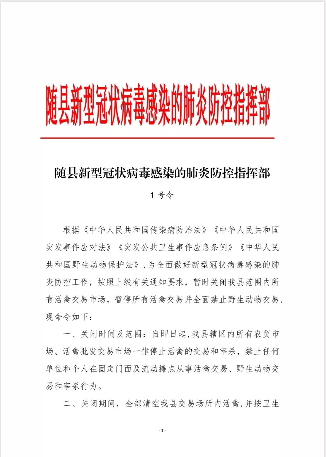 权威发布!随县新型冠状病毒感染的肺炎防控指挥部1号令