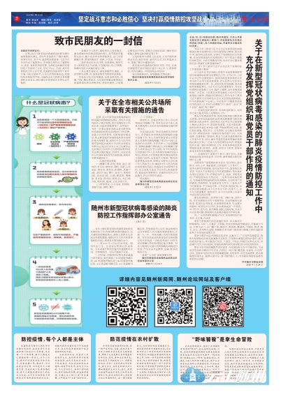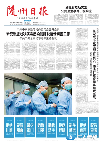 1月26日,随州日报出版"新型肺炎"防控专刊