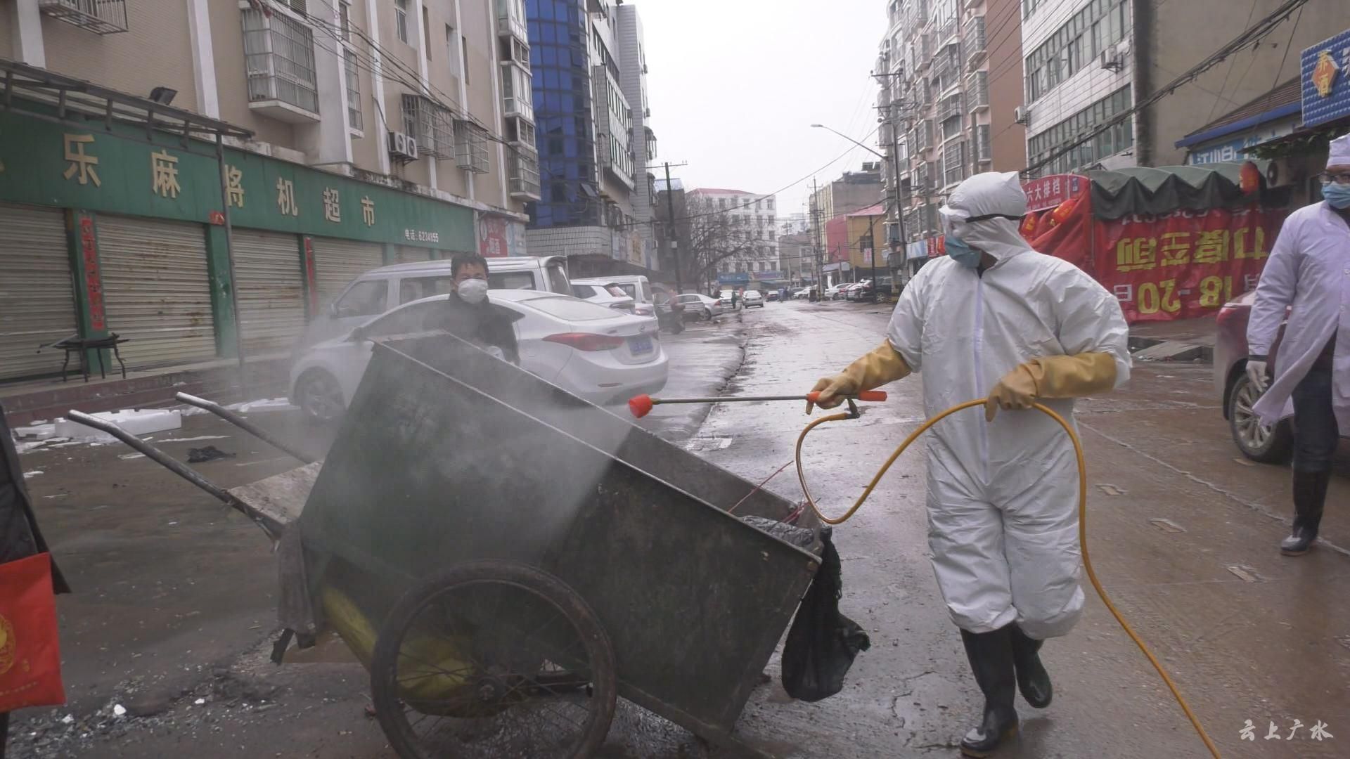 1月26日,广水市疾控中心组织专班对城区所有街道、垃圾桶、垃圾车、公厕、门诊、农贸市场进行统一喷洒消毒,全力做好疫情防疫工作。