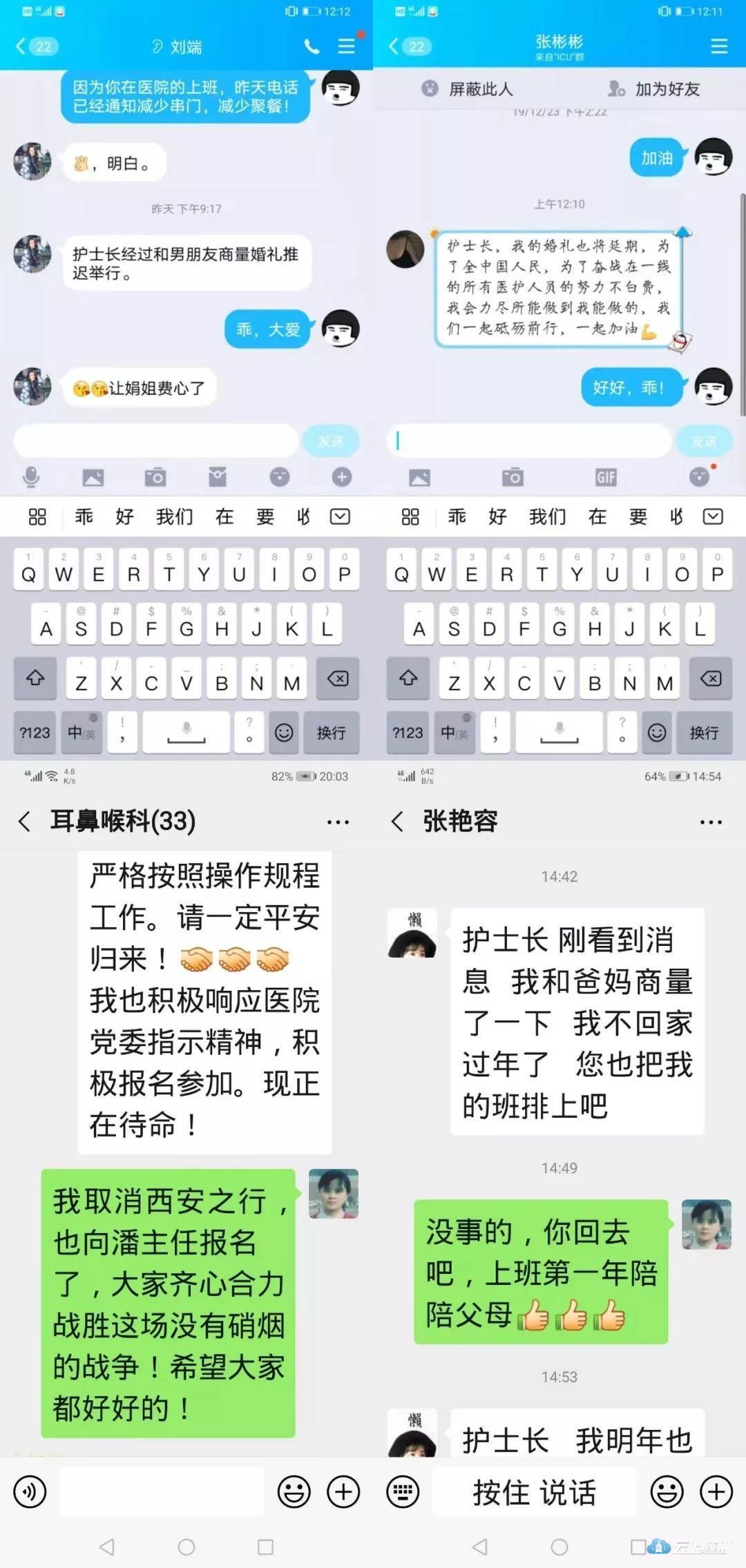 这个勇敢、聪明的发圈女孩名叫杜娜,是随州市中心医院感染性疾病科主治医师,硕士研究生。疫情来临,杜娜主动请缨,她说“在众多一线抗击新型病毒性肺炎的卫生战士中,我仅仅是其中普通的一员,我不想当英雄,但绝不会当逃兵!我送走了家人和两个孩子,家人也很支持我,我老公说,用粗俗的话说,人活着总要干点有意义的事情吧,总不能只吃饭拉屎睡觉吧!我是一名感染科医生,治病救人是我的职责所在,健康所系性命相托,服务病人,是我们作为医务工作者的天职,在工作中,困难总是有的,我们都尽量想办法克服,争取不给领导添麻烦,同事们都很辛苦,连轴转,希望我们众志成城,打赢这场硬仗!”