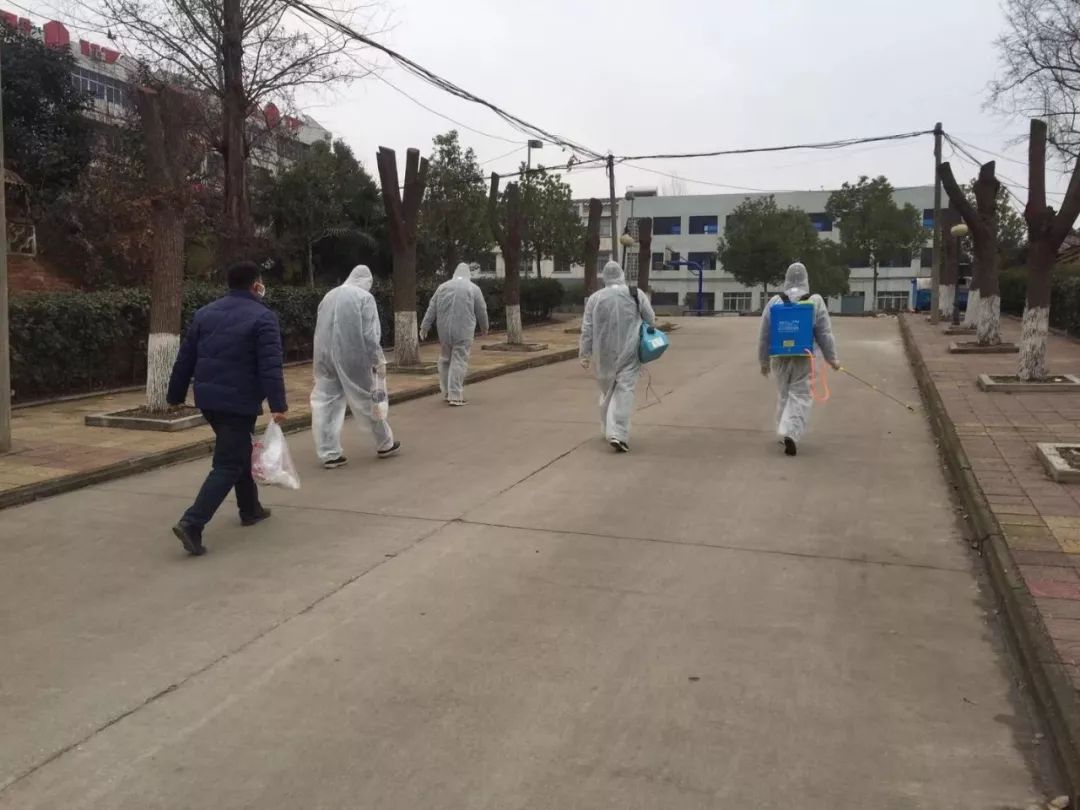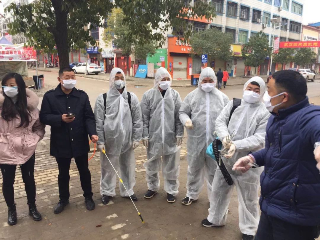1月26日,万福店农场组织卫生院、城建办工作人员穿戴防护服开展喷雾消毒工作。(程鹏)