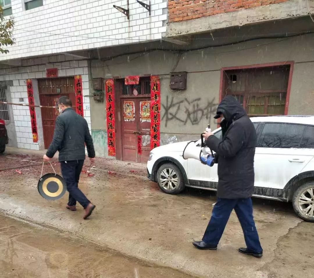1月26日,均川镇墙院村党支部书记走村串巷,利用喇叭、铜锣等形式宣传新型冠状病毒感染的肺炎防控知识。(胡恒旭)