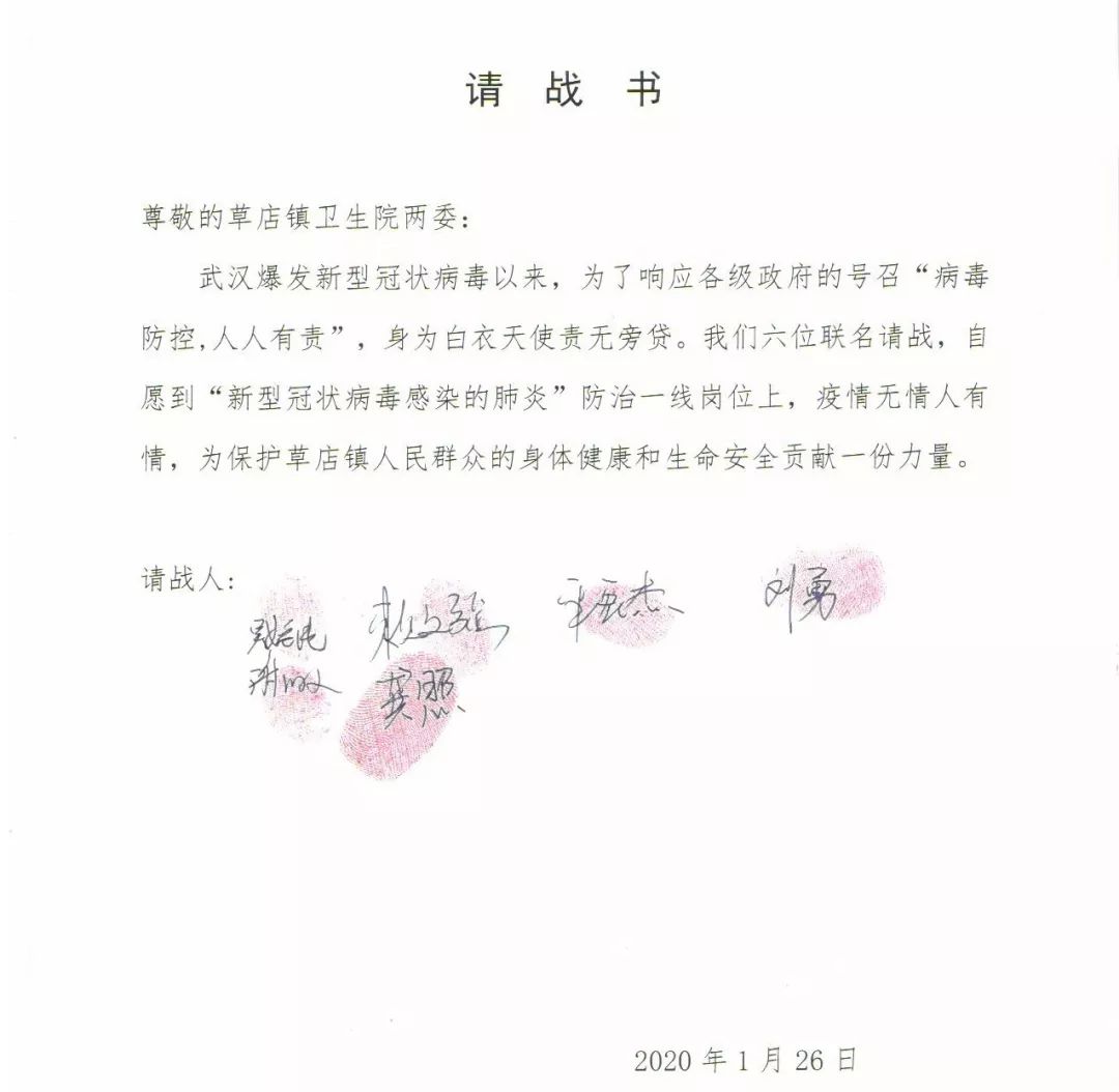 发热预检分诊处、发热门诊安排医护人员全天24小时在岗,向前来咨询的居民答疑解惑,并为他们测量体温。赖文强、宋宏杰、刘勇三位医生和龚照、阮晓颜、谢纪双三名护士联名写下请战书,主动请缨走上新型冠状病毒感染的肺炎防控一线岗位上,自愿坚守在抗击病毒的前线,为保卫人民群众生命健康贡献自己的一份力量。