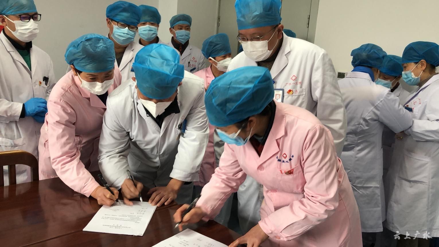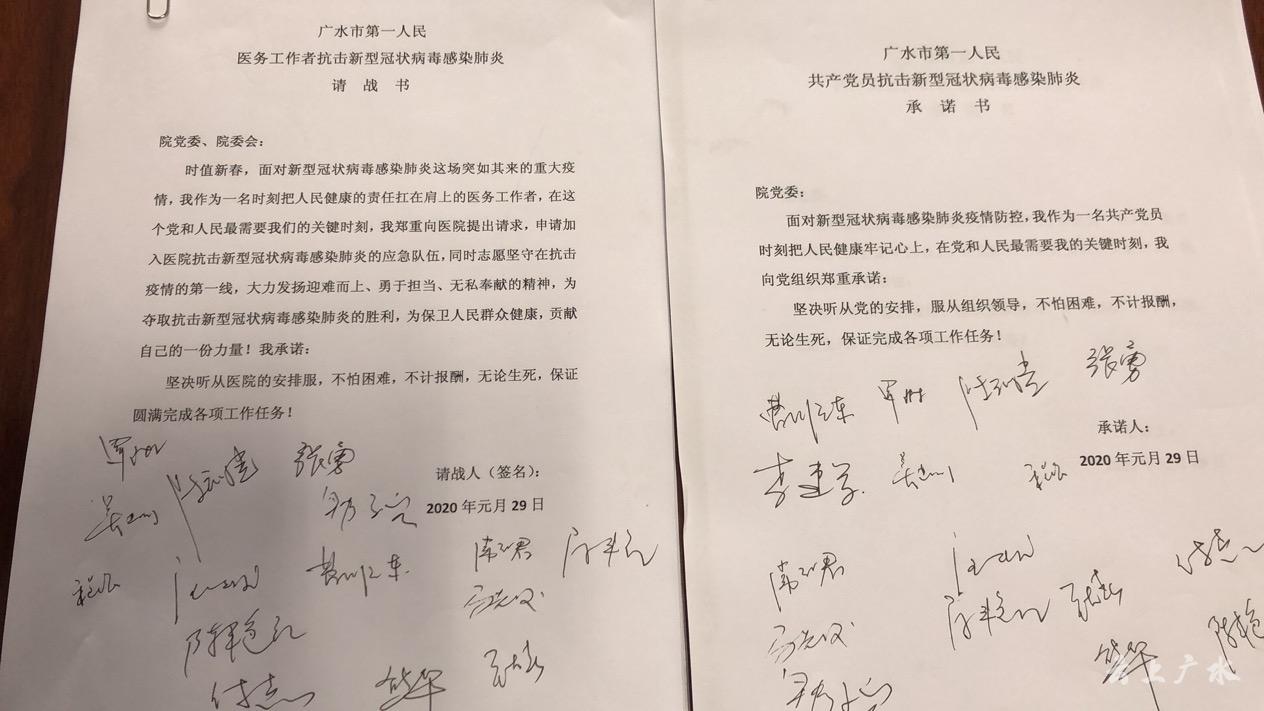 这是一医院16名党员医务工作者集体承诺的现场,誓言掷地有声,他们只是300多名医务工作者中的代表,因为绝大多数医生正奋战在防控一线,正在经历一场时间与生命的赛跑与抗争,请战书上大家庄重的签上了自己的名字,密密麻麻的签名犹如坚定的誓言屹立在与疫情拼杀的第一道壕堑……