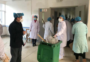 1月29日一大早,在医院领导的带领下,各职能部门工作人员,与后勤处、保卫科的保安、保洁人员一起共计百余人,来到市中心医院龙门院区永康楼,帮助医务人员将康复科住院病人转移到别的病区,将库房棉被、病床及其它医疗物资进行清理、运送,对一楼、二楼各个房间进行大扫除。