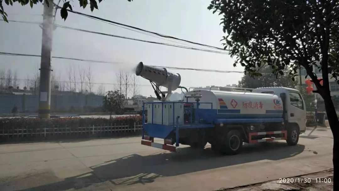 1月30日,南郊办事处全体干部和支援南郊的区直部门强化防控措施,加强宣传力度,分组包户、包重点人,确保宣传无死角、登记管理无遗漏。程力公司支援远程喷雾机对辖区公共场所进行全面消毒杀菌。