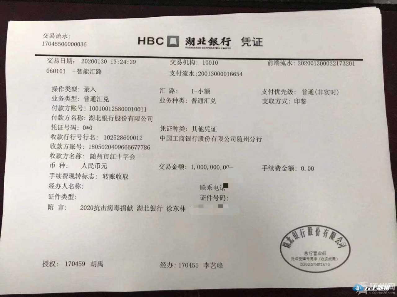 湖北银行履行社会责任2500万元捐款已全部划出。针对随州地区捐赠100万元,用于抵抗新型肺炎病毒,愿病毒消散,苦痛远离,世人安康。随州加油,武汉加油,湖北加油,中国加油 编辑:苏浩伟 责编:钱思雪 审核:陈凡 鲁京京
