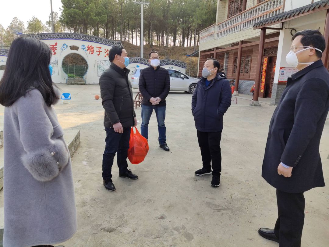 1月30日下午,随县财政局主要负责人带队来到驻点村梅子沟,指导疫情防控工作,给梅子沟村送来了5000元疫情防控帮扶资金、500个防护口罩和灭菌药物。(续晓波 、涂庭民)