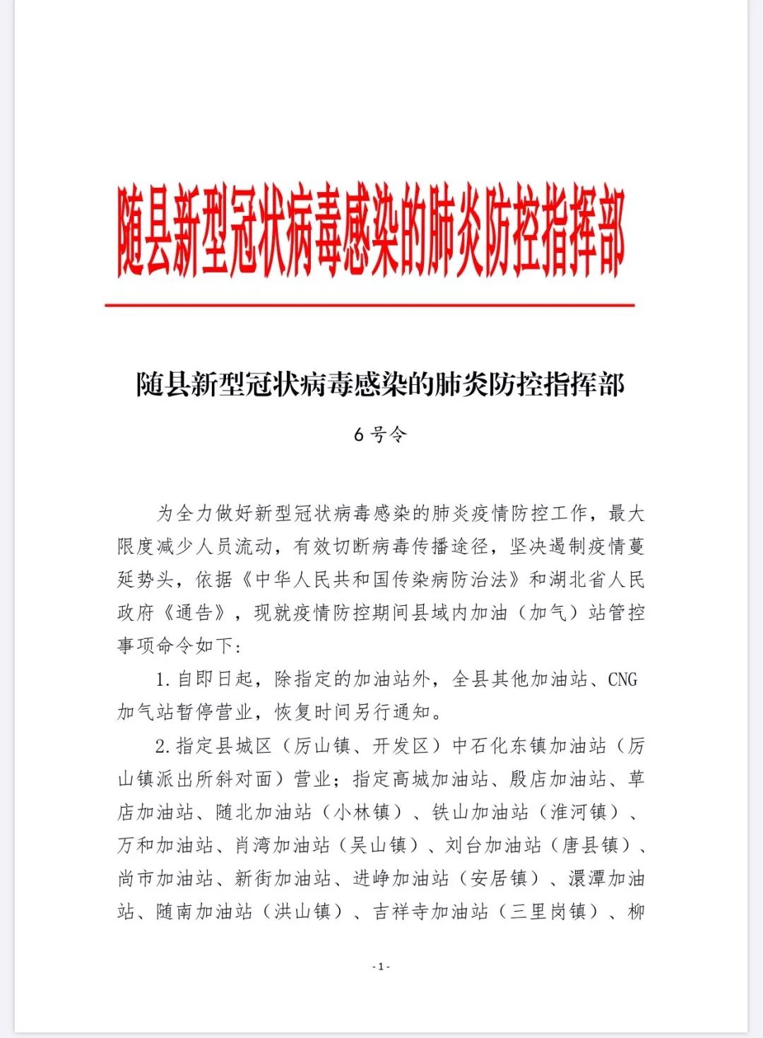 权威发布!随县新型冠状病毒感染的肺炎防控指挥部6号令