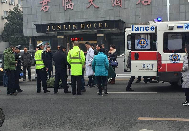 9点48分,救护车赶到,在询问倒在地上的妇女基本情况后医护人员将她担架抬入救护车,记者看到这名妇女意识清醒,头发有些凌乱。随后救护车带离开现场。具体案件细节警察还在询问中。 最后记者在这里提醒广大市民朋友,过马路时一定要走斑马线,要做到一停二看三通过。司机朋友们要文明礼让行人,让我们的和谐社会更加美好。