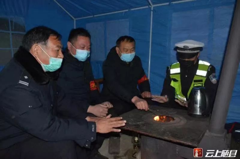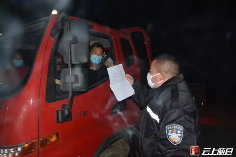 夜晚8时许,殷店镇240国道忤水关路口灯光闪烁。这里是交通管制点之一,11名值守人员全副武装,仔细盘查过往车辆,路边帐篷内,有火炉、大衣、棉被。“已经值守7天了,我们做好了长期驻守的准备。”带队干部李仁毅说,每天24小时,对过往人员执行“配戴口罩、确认身份、测量体温、消毒、登记”五项要求。这个点,最初每天来往车辆近100辆,劝返60多辆,现在减少一大半,放行的都是救护、环卫、公务、应急运输车辆。