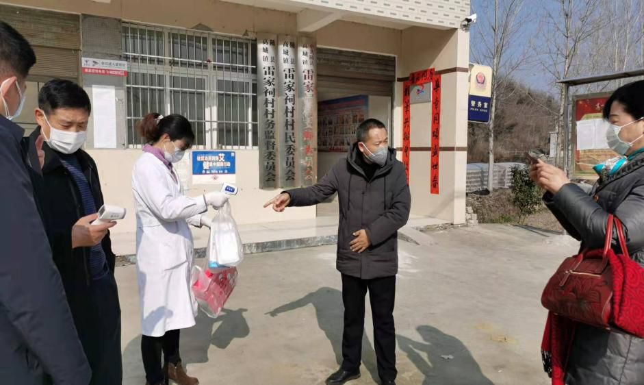 1月30日,随县住房和城乡建设局主要负责人到联系包保村高城镇雷家祠村指导开展疫情防控工作,并送去400个口罩。(姜浩)