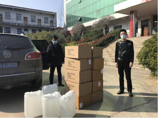 1月30日,随州市利康制药集团总经理程健多方筹措,为柳林镇送来医用酒精100公斤,防护口罩20000只,为柳林镇新冠肺炎疫情防控工作加油助力。(朱国勇)