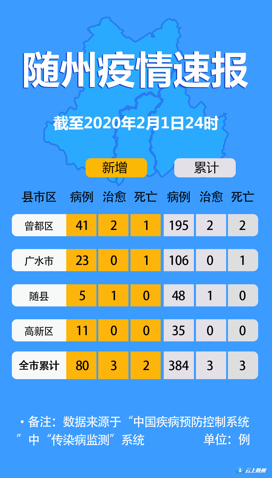 速报!2月1日随州新增80例,累计病例384例,新增死亡2例