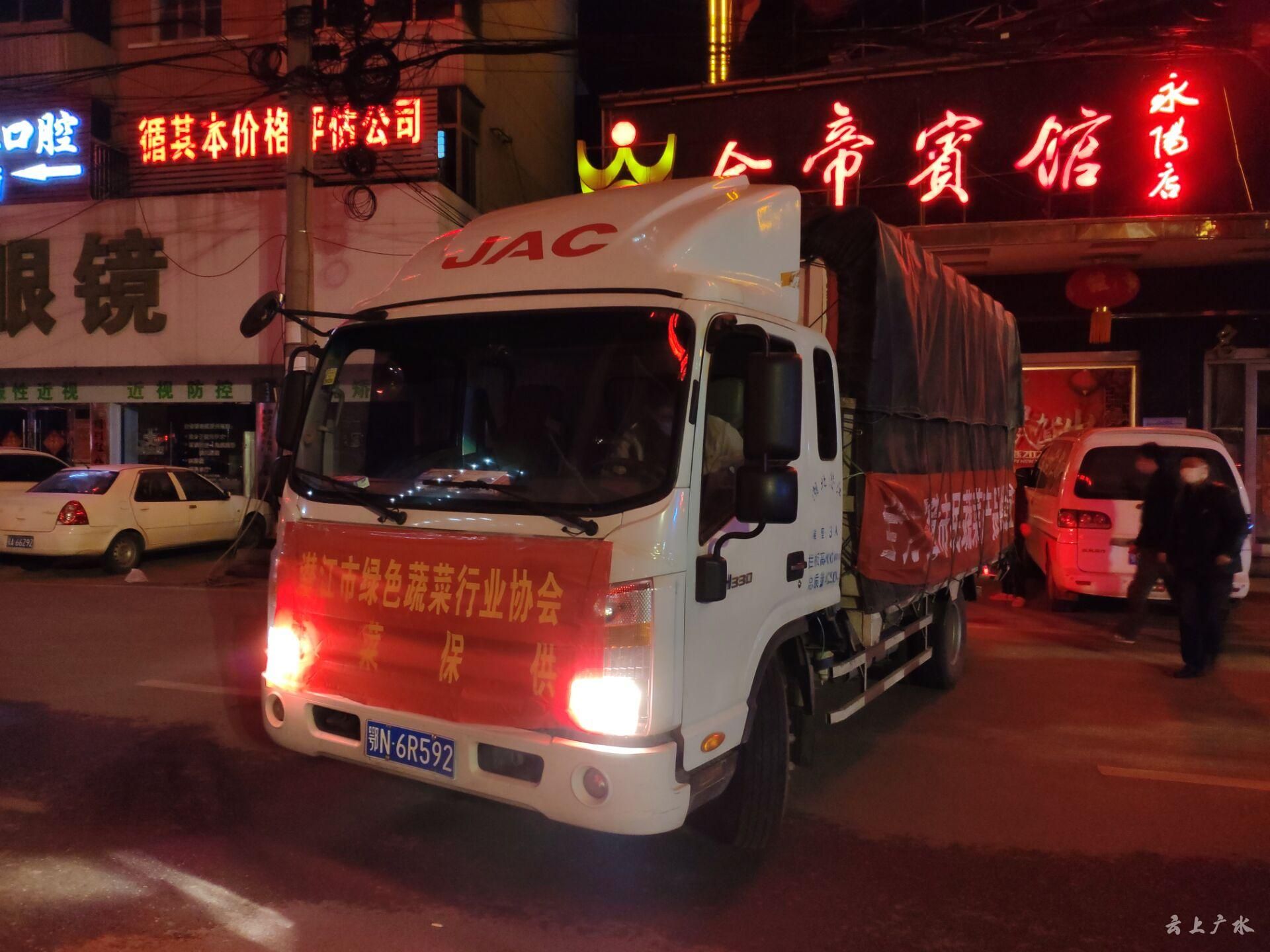 2月2日晚9时许,一辆来自潜江的货车顺利抵达广水。这辆车上满载着7670斤新鲜蔬菜,这些蔬菜是潜江市绿色蔬菜行业协会无偿捐赠给广水市疫情防控指挥部的。