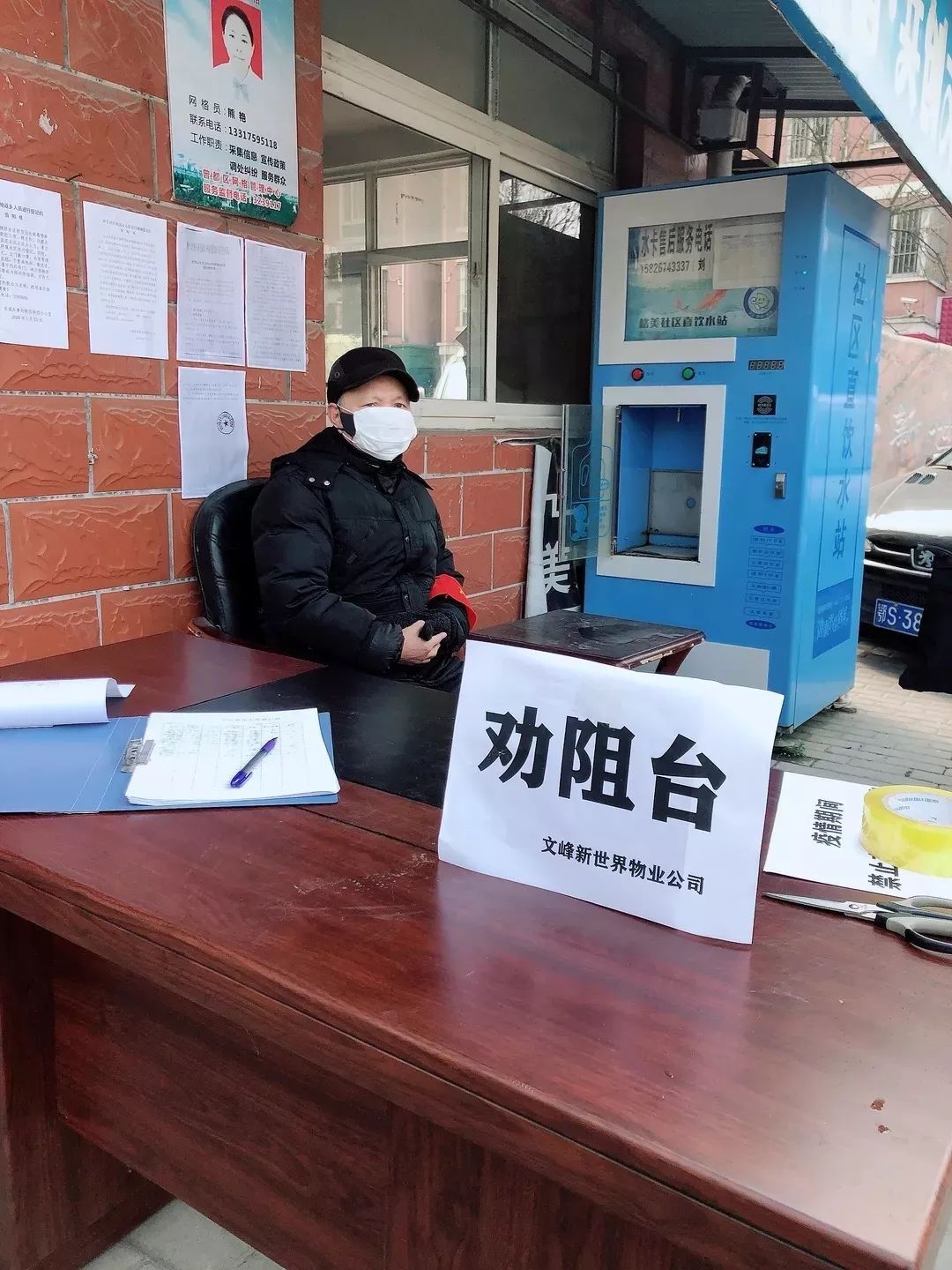 在文峰新世界小区门口,有这样一位老人,他戴着口罩、带着志愿者红袖章、衣着干净整齐,招呼出入小区的居民登记,每天在小区出口处执勤,从早上8点到中午12点,一守就是大半天,从年初二到今天,风雨无阻。既非单位要求,也不是物业聘请,他为何勤勤恳恳,如此执着?