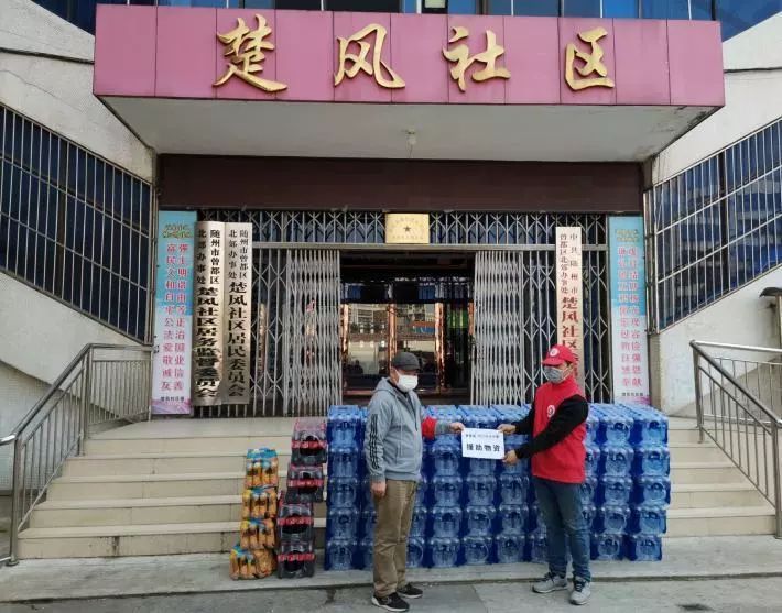 2月2日,区文明办向楚风社区捐赠矿泉水50箱,可乐4提,口罩10包。