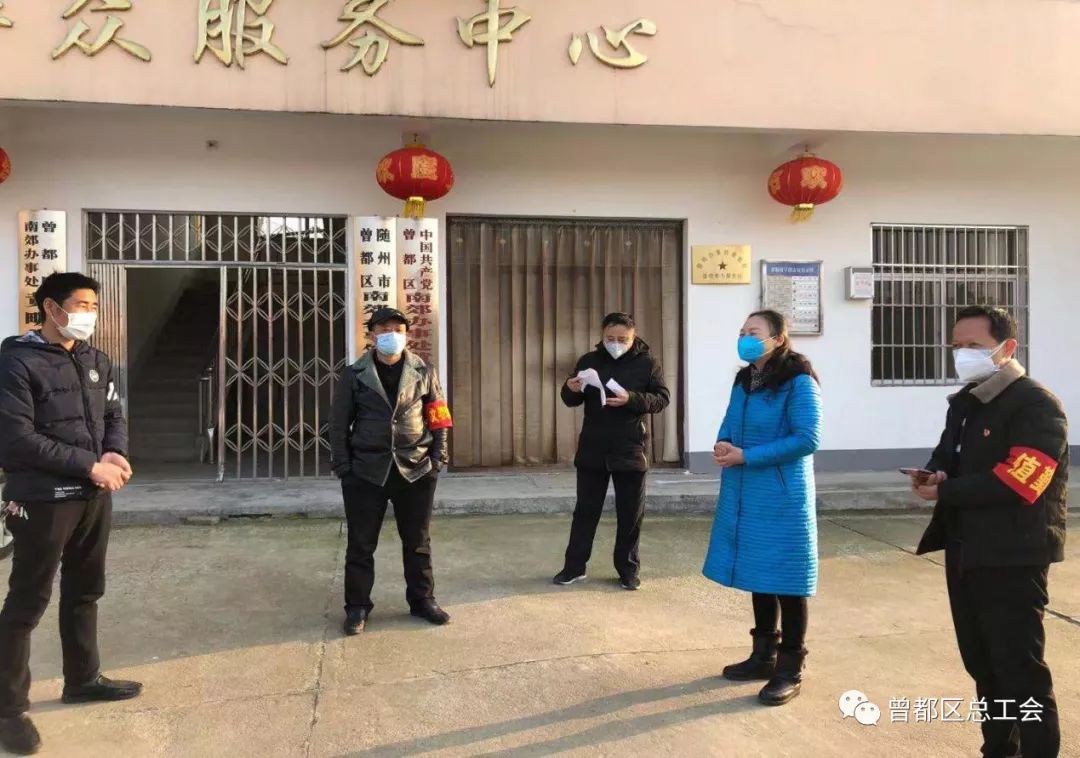 曾都区总工会积极响应区委区政府号召,自1月27日(正月初三)开始,全体工作人员放弃春节休假提前返回工作岗位,按照要求成立疫情防控工作组,前往南郊红山头村和黄畈村及文峰塔、乌龙巷社区协助开展新型冠状病毒感染的肺炎疫情防控工作。