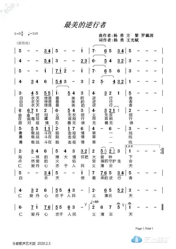 经过精心酝酿,反复推敲,随州著名音乐人杨勇、随县作家协会会员王光赋联合作词,音乐人杨勇、方黎、罗藕清联合作曲的赞美白衣天使的歌曲《最美的逆行者》于2月2日正式面世,广大文艺爱好者纷纷传唱,受到社会的广泛关注!