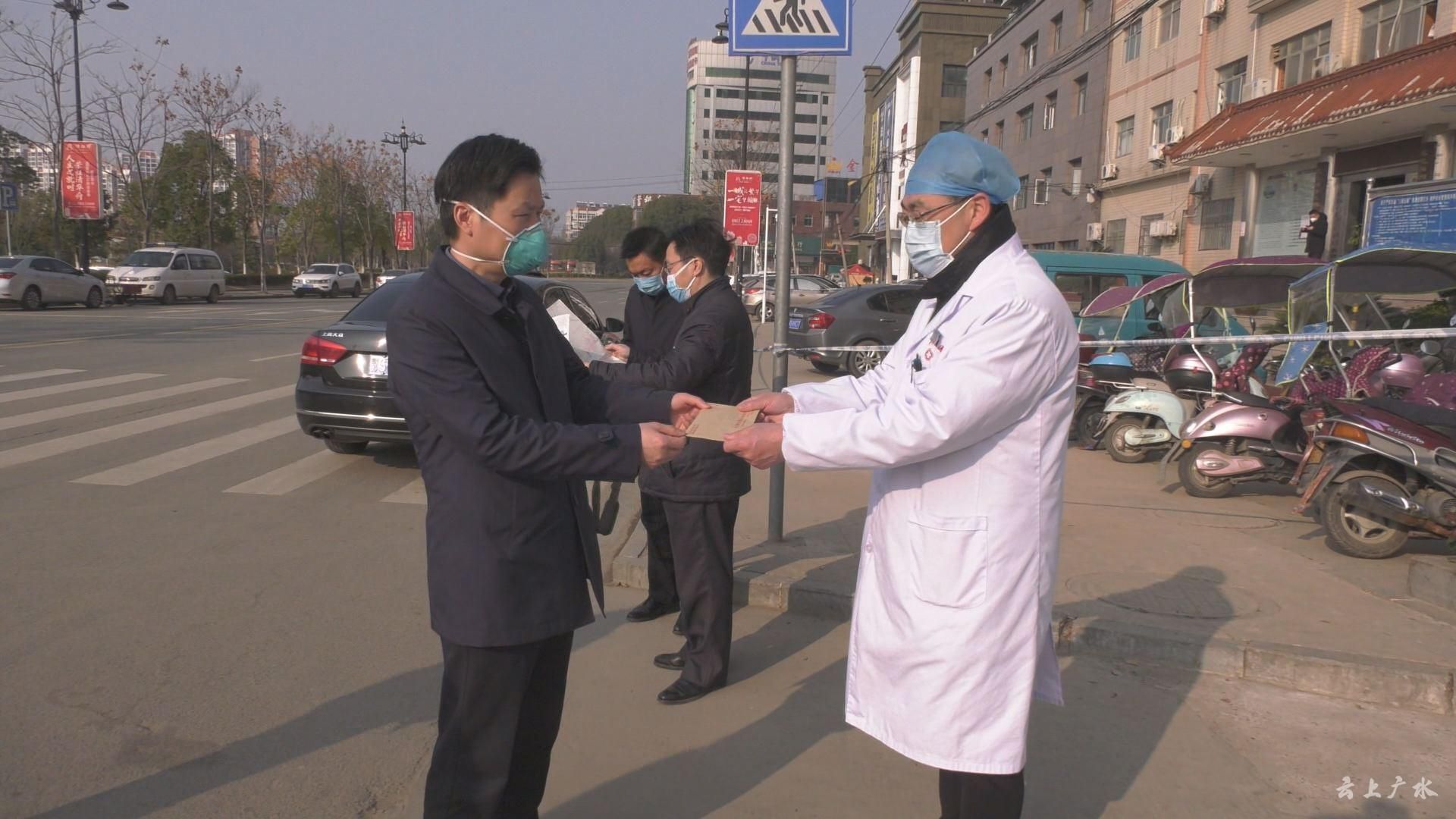 2月4日,随州市委常委、组织部长甘国栋到广水市中医院慰问家庭困难的医护人员并送上慰问金。