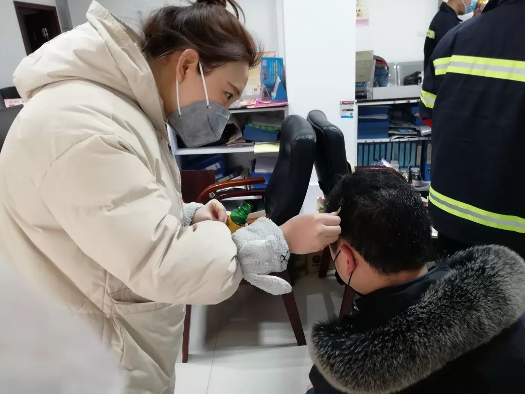 “罗新,小心碰头!”话音没落,正在爬高挂横幅标语的罗新已撞上了头顶上面的广告牌,当即鲜血直流。2月1日上午,龙门街社区工作人员罗新、冯曙光和网格员正在园黄坑小区悬挂疫情防控宣传标语。众人劝罗新赶紧到医院包扎一下,他却坚定的说:“这点事不算什么,轻伤不下火线,我们继续安装。”说完,就让同事帮着用酒精简单地消毒,然后继续投入工作。