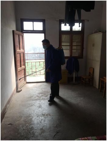 对院内每个角落进行消毒防疫