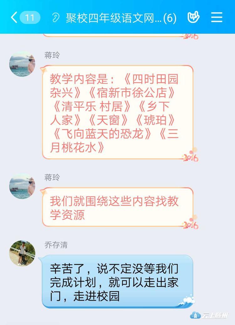 为将“网络教学”这一新的教学方法落实好,学校利用学科教研群、年级备课群和班级授课群,开展网络校本教研,共同商议教学计划,备好网络教学课,为学生挑选合适又高质量的网络课程。