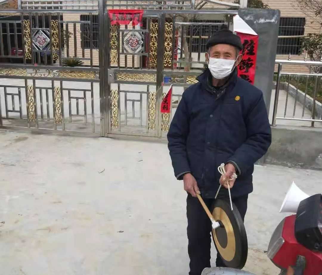 得知村“两委”的请求,今年76岁的韩全真老人立马答应下来,“平日里都是村上照顾我,难得有机会给村上做点贡献”,他向村委会提议找一面锣来,边敲边喊,提醒村民注意。
