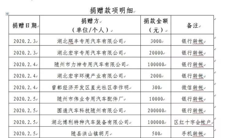 自2020年2月3日曾都经济开发区防控指挥部发布“关于动员捐赠新型肺炎疫情防控物资倡议书”以来,社会各界爱心人士和企业积极响应,踊跃捐赠。在这里,曾都经济开发区防控指挥部向各位爱心人士和企业表示衷心感谢。