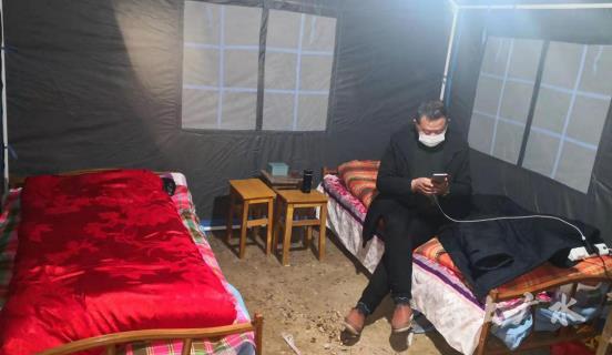 “王书记,你一个人在帐篷里值守不安全,我陪你一起。”2月5日晚,吴店镇楼子湾村驻村工作队员柴承明对驻村第一书记王兴荣说道,随后他将自己的简易床铺搬到帐篷内,同王兴荣一起“并肩作战”。