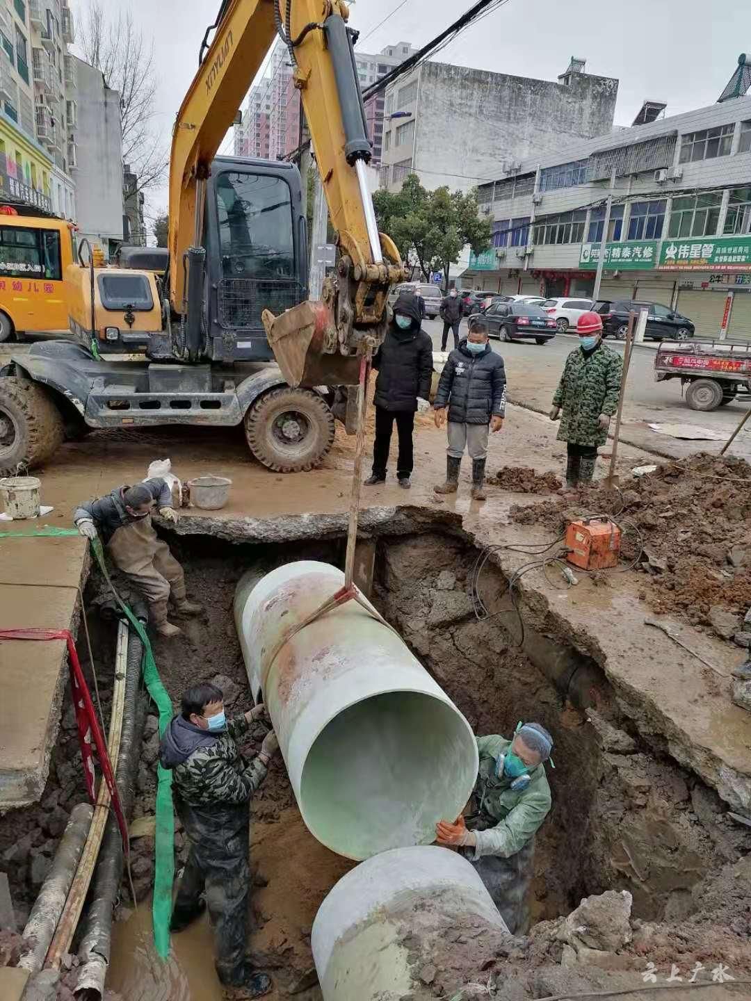 2月6日,广水市应山城区一条供水主管道突然爆裂,当地供水部门迅速组织力量抢修,仅用13个小时恢复供水。