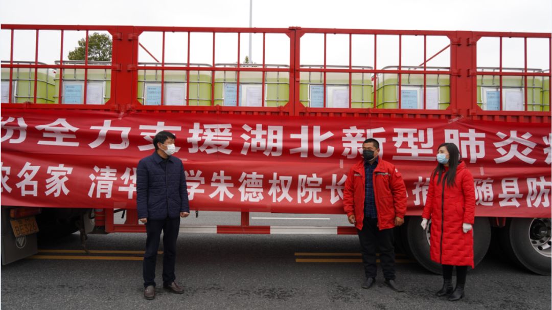万斤消毒液,爱心重千斤,千里送爱心的背后是随县籍清华教授朱德权的桑梓情怀。记者通过电话采访了解到,朱德权老家在随县厉山镇,毕业于清华大学,现任北京清华工业开发研究院副院长,在得知家乡发生疫情后,他人虽在国外,但心系家乡父老乡亲,在得到爱心企业山东滨化集团的大力支持后,紧急送来了这一批爱心物资,驰援家乡随县。