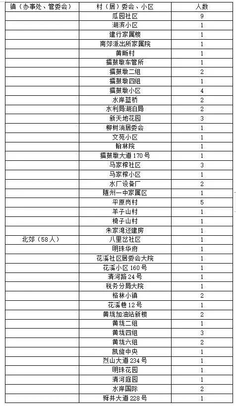 截至2020年2月7日24点,曾都区累计确诊新冠肺炎病例456例,具体分布如下: